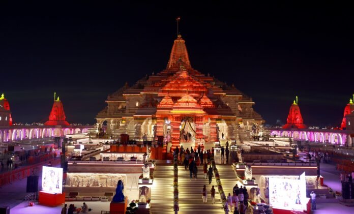 लखनऊ, 24 नवम्बर (एजेंसियां)। ध्वजारोहण कार्यक्रम-2025 से ठीक पहले अयोध्या के श्रीराम जन्मभूमि मंदिर परिसर में आस्था और आध्यात्मिकता के अद्वितीय रंग बिखरे दिखे। पूरे मंदिर क्षेत्र को दीपों, फूलों और आकर्षक रोशनी से सजाया गया है, जिससे पूरा परिसर स्वर्गिक आभा से दमक उठा। रामलला के दर्शन को लेकर सुबह से ही श्रद्धालुओं की लंबी कतारें लग गईं। भक्तों के जयश्रीराम के उद्घोष से पूरा वातावरण श्रद्धा और उत्साह से गूंज उठा।