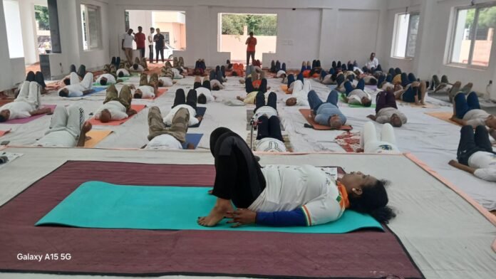 सैकड़ों प्रतिभागियों की उपस्थिति में सूर्य नमस्कार, त्रिकोणासन, भ्रामरी प्राणायाम और ध्यान के अभ्यास ने वातावरण को आध्यात्मिक उर्जा से भर दिया। केंद्रीय औद्योगिक सुरक्षा बल (CISF) के जवानों ने भी इस आयोजन में भाग लेकर अनुशासन और समर्पण की मिसाल पेश की।