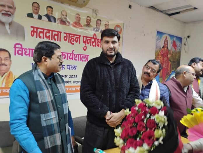 लखनऊ, 10 जनवरी 2026। मतदाता गहन पुनरीक्षण (एसआईआर) अभियान, विधानसभा स्तरीय कार्यशाला तथा नये भाजपा अध्यक्ष के स्वागत को लेकर शुक्रवार को हजरतगंज स्थित हलवासिया भवन में एक महत्वपूर्ण बैठक आयोजित की गई। बैठक में सभी पदाधिकारियों से 6 फरवरी तक फार्म-6 भरवाने के लक्ष्य को प्राथमिकता के साथ पूरा करने का आह्वान किया गया।