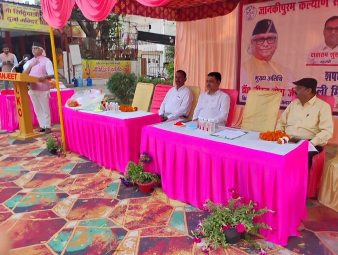 सनातनजन संवाददाता लखनऊ। जानकीपुरम कल्याण समिति का शपथ ग्रहण समारोह व होली मिलन समारोह आज जानकीपुरम पार्क में सम्पन्न हुआ। इसके अध्यक्ष संजय तिवारी, महामंत्री दाताराम शुक्ल और मुख्य अतिथि उत्तर विधान सभा के विधायक डा0 नीरज बोरा रहे। संजय तिवारी ने मुख्य अतिथि का माल्यार्पण किया और प्रतिमा देकर स्वागत किया।
